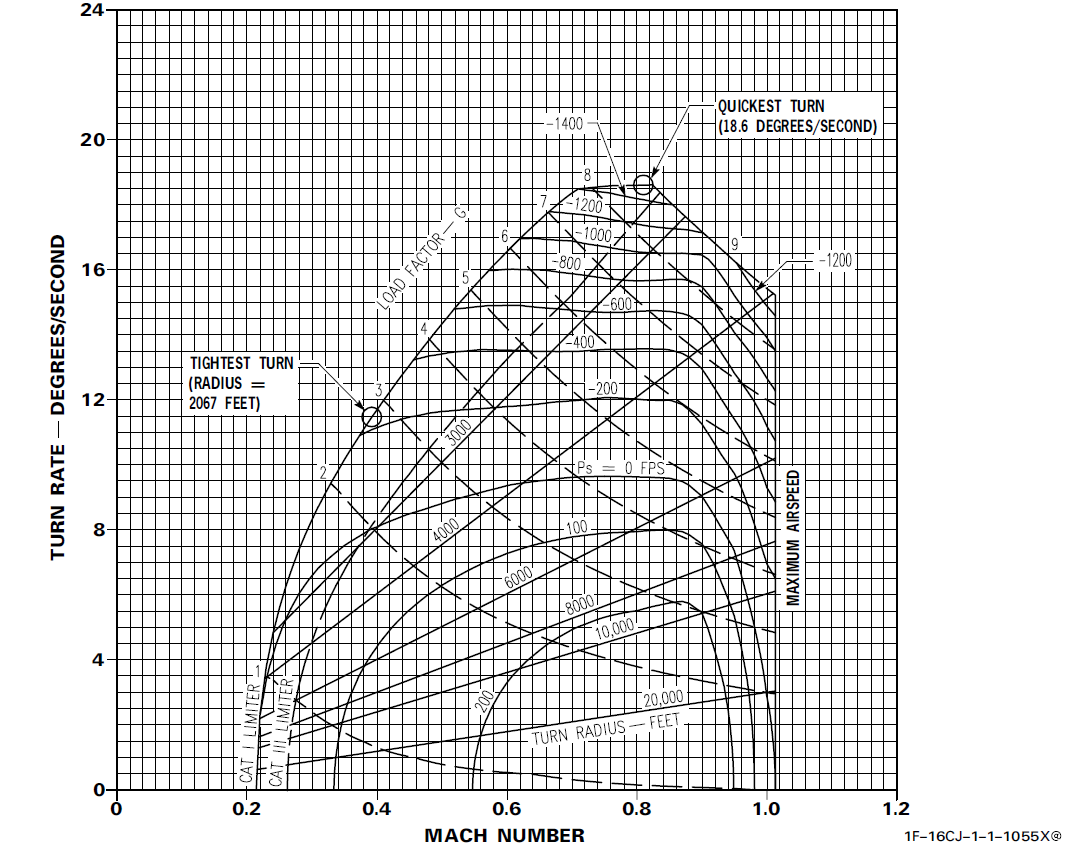 Graph 1: Sample “doghouse” plot of F-16 C/D Block 52 at 10,000 feet